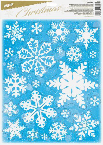 Okenní fólie glitrová ve tvaru vloček. Fólie se lehce odlepují a nalepují a nezanechávají za sebou žádné stopy lepidla. Pomocí okenních fólií si velmi snadno a levně vytvoříte vánoční atmosféru na celé svátky.
