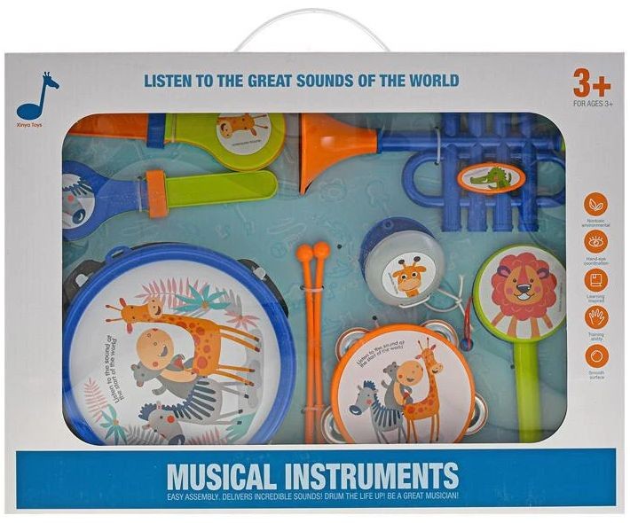 Sada hudebních nástrojů 7 ks s paličkami a trumpetkou