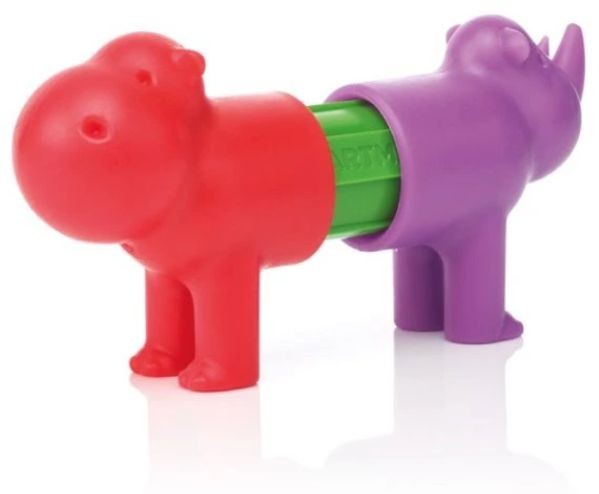 Děti si vždy ze tří částí postaví 6 zvířátek - žirafu, lva, nosorožce, slona, krokodýla a hrocha.