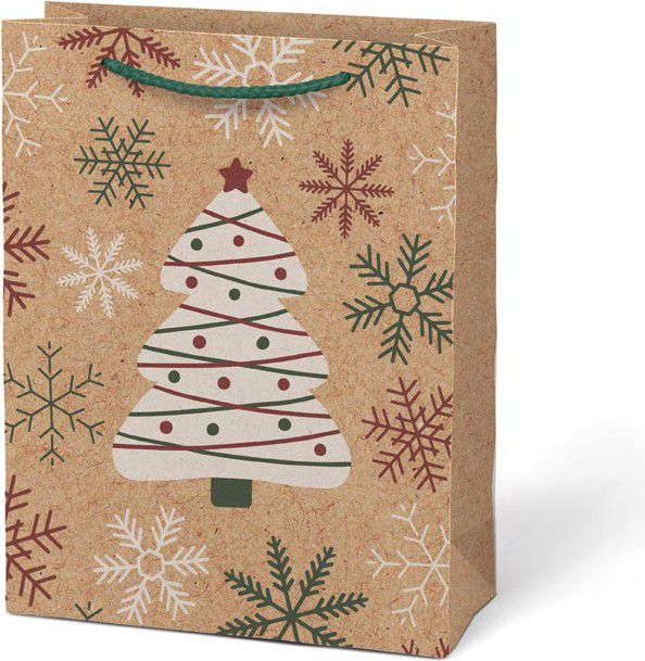 Vánoční dárková papírová taška L LUX KRAFT. Je ideální na předání dárků a velkým pomocníkem, když je těžké dárek zabalit do dárkového balicího papíru. Taška je opatřena pevným uchem.