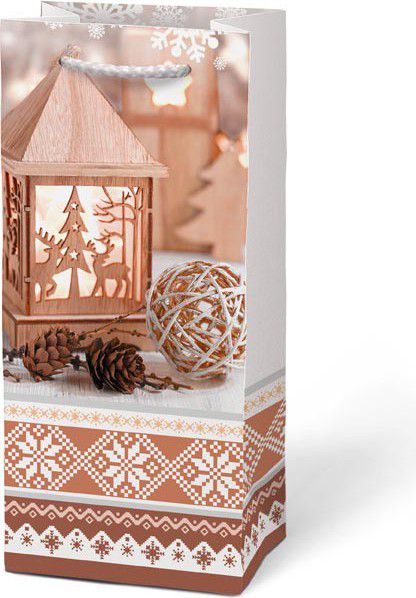 Vánoční dárková papírová taška T3. Je ideální na předání dárků, které je těžké zabalit do dárkového balícího papíru. Taška má pevné ucho pro snadné přenášení a štítek pro vepsání jména či přání.