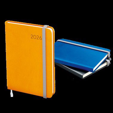 Diář s týdenním kalendáriem na jedné straně a na druhé straně s prostorem na poznámky. Desky jsou ohebnější, mají moderní ražbu, kulaté rohy a gumičku.