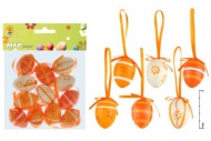 BALENÍ OBSAHUJE: - 12 ks plastových vajíček s malovanými motivy v oranžové barvě - vajíčka mají provázek na pověšení