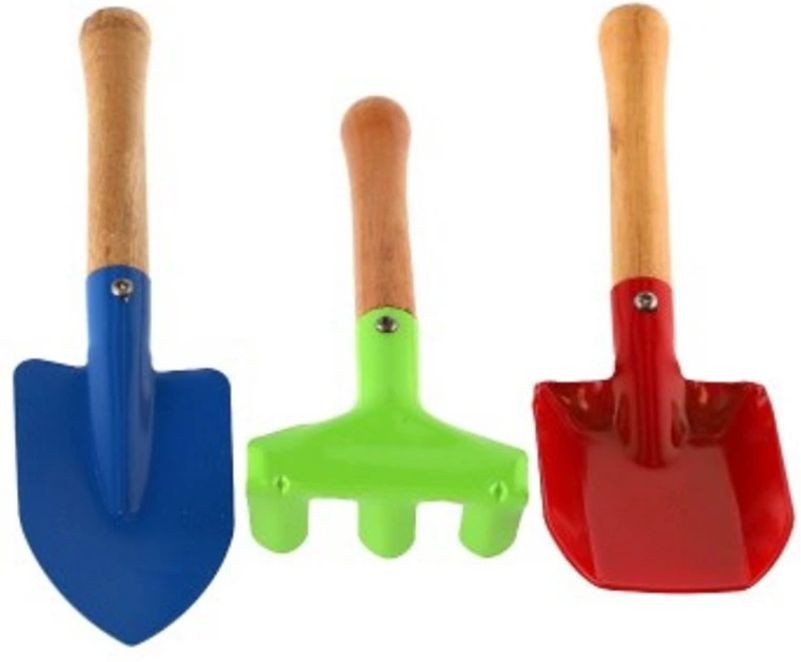 Obsahuje 3 kusy nářadí: kovová lopatka, hrábě, rýč.