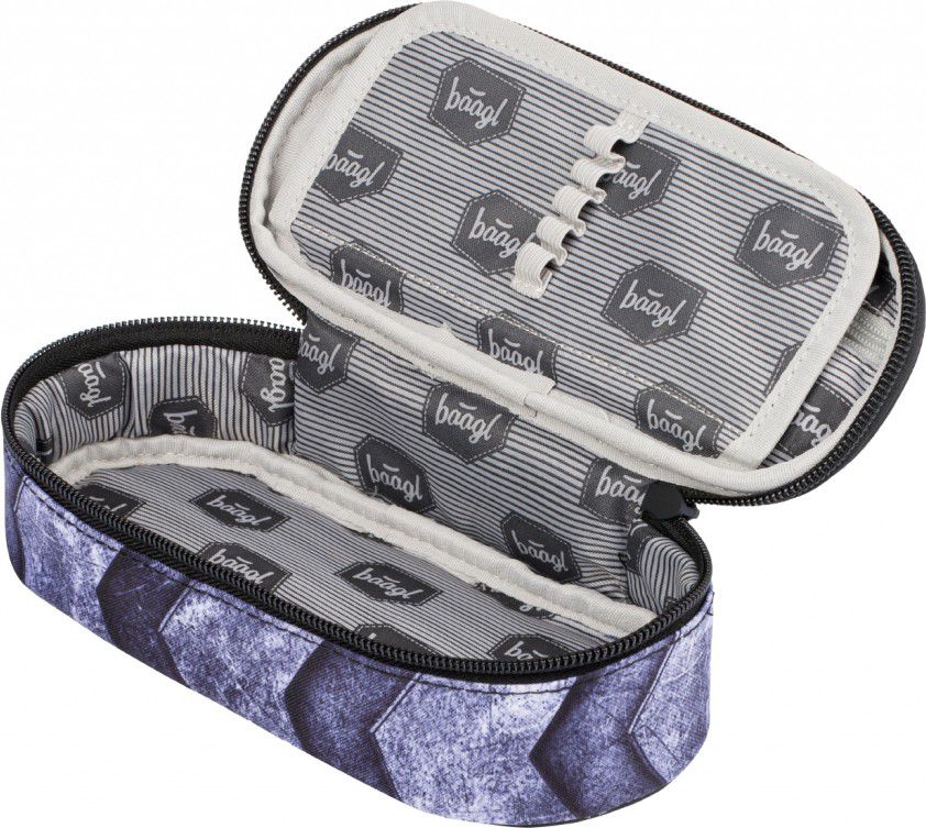 - Pevný školní penál s výklopnou vnitřní přepážkou.
