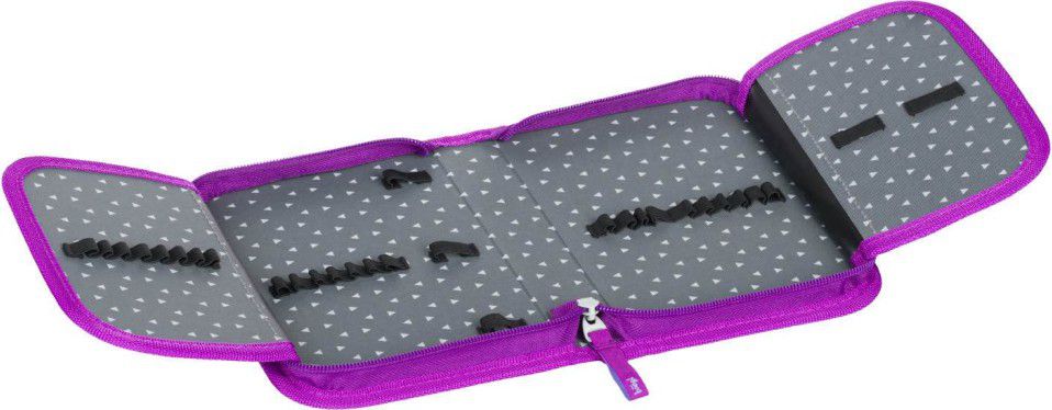 • Uvnitř aktovky je průhledná kapsa s rozvrhem a vnitřní organizér umožňující rovnoměrné rozložení hmotnosti, doplněný gumičkou pro fixaci.