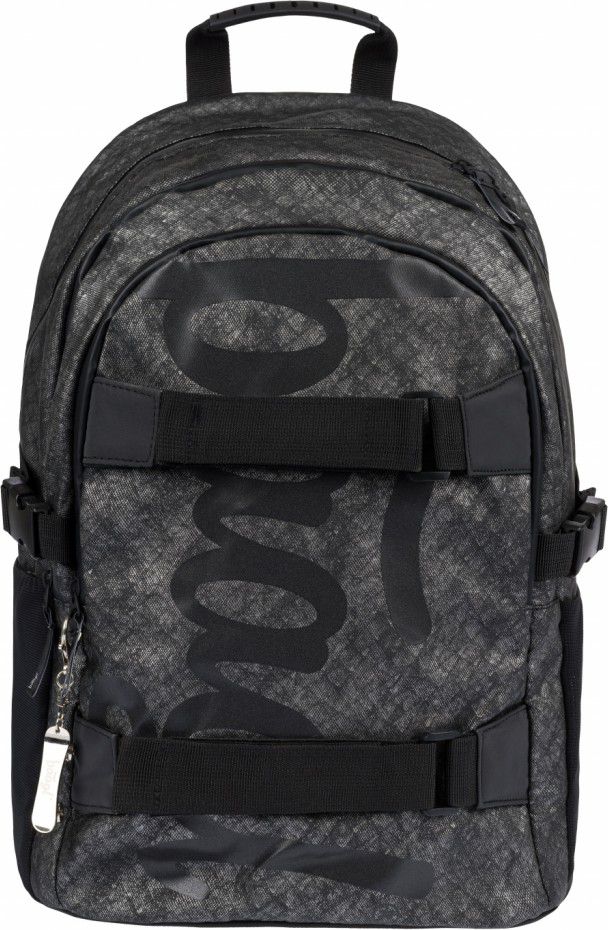 Batoh má jako bonus kovový přívěšek ve tvaru skatu.