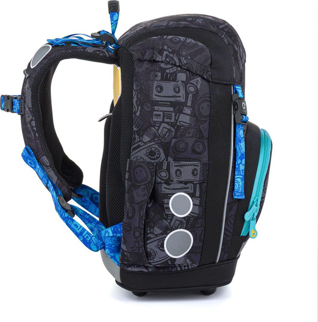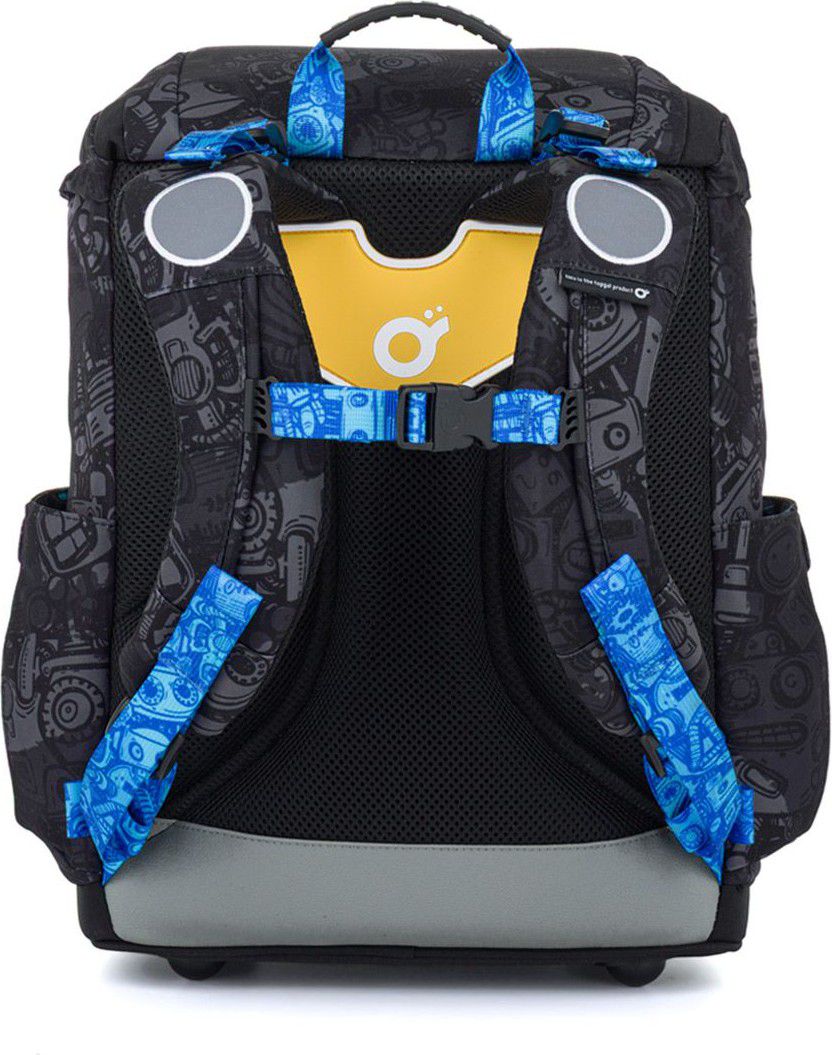Technický motiv s roboty, převody a mechanickými prvky zaujme všechny malé fanoušky strojů a chytrých vynálezů. Tmavší grafika v kombinaci s tyrkysovými detaily působí moderně a nadčasově. Součástí aktovky je i pevně držící magnet ve tvaru malého robota, který doladí celý vzhled a dodá mu hravý prvek. Vyměnitelné magnety ZMAG lze také dokoupit u nás.