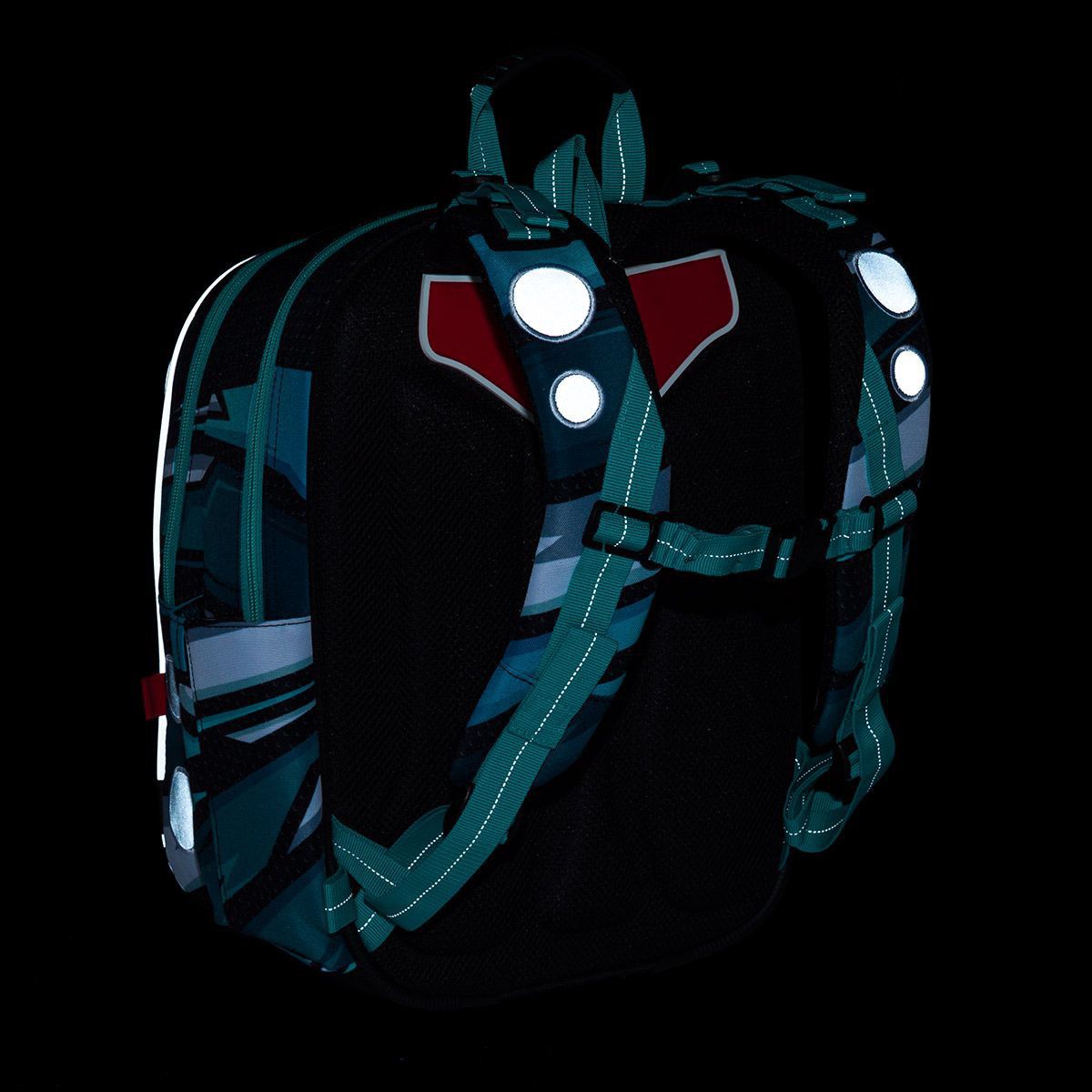 - reflexní prvky: na čele a bocích batohu, na ramenních popruzích