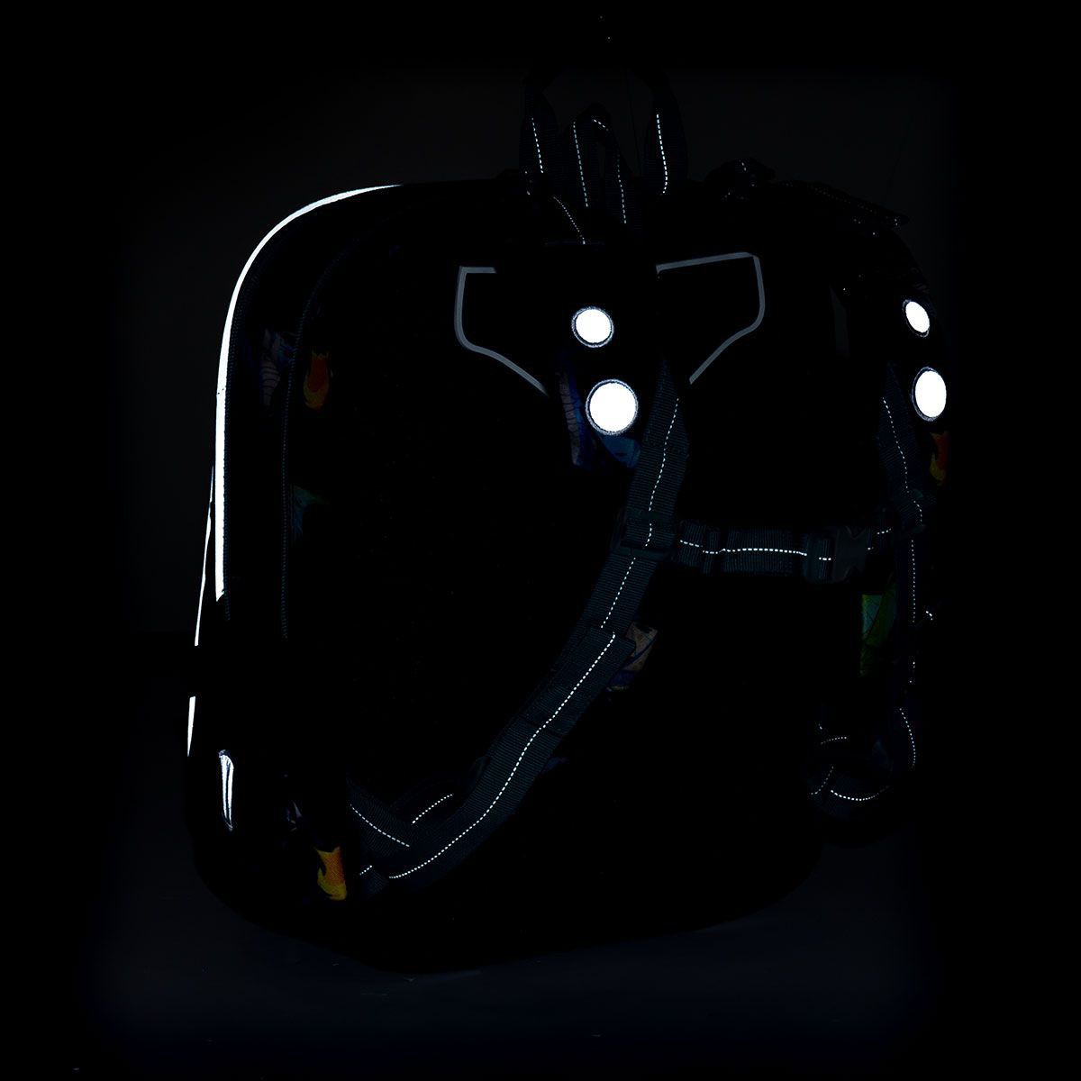 Batoh má dvě hlavní objemné komory. Zadní komora batohu je širší, radíme do ní umístit nejtěžší učivo a směrem dopředu odlehčovat. V přední komoře je umístěna síťová kapsa na zip a jmenovka. Do přední hluboké kapsy na čele batohu se vejde třeba krabička na svačinku, nebo penál ve stejném designu. Do bočních kapes se vejdou lahvičky o objemu 0,5 litru.