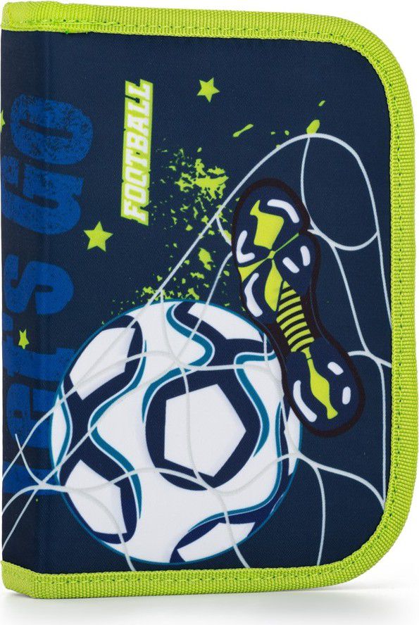 Penál: Jednopatrový školní penál s 2 chlopněmi, prázdný obsahuje 25 gumových poutek pro uchycení psacích potřeb. Na vnitřních chlopních jsou průhledné fólie pro rozvrh hodin.