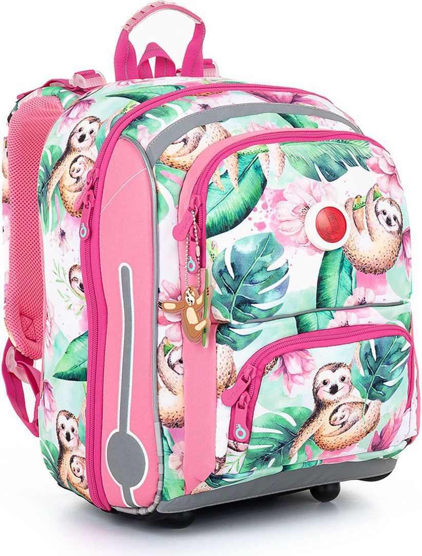 Model BEBE je nejmenší batoh z naší nabídky. Jde o kompromis mezi aktovkou a školním batohem, který jsme vyvinuli speciálně pro malé drobečky s výškou 110 cm. Rodinku lenochodů doplňuje gumový lenochod jako přívěsek. Tato roztomilá zvířátka v naší zoo rozhodně nemohla chybět!