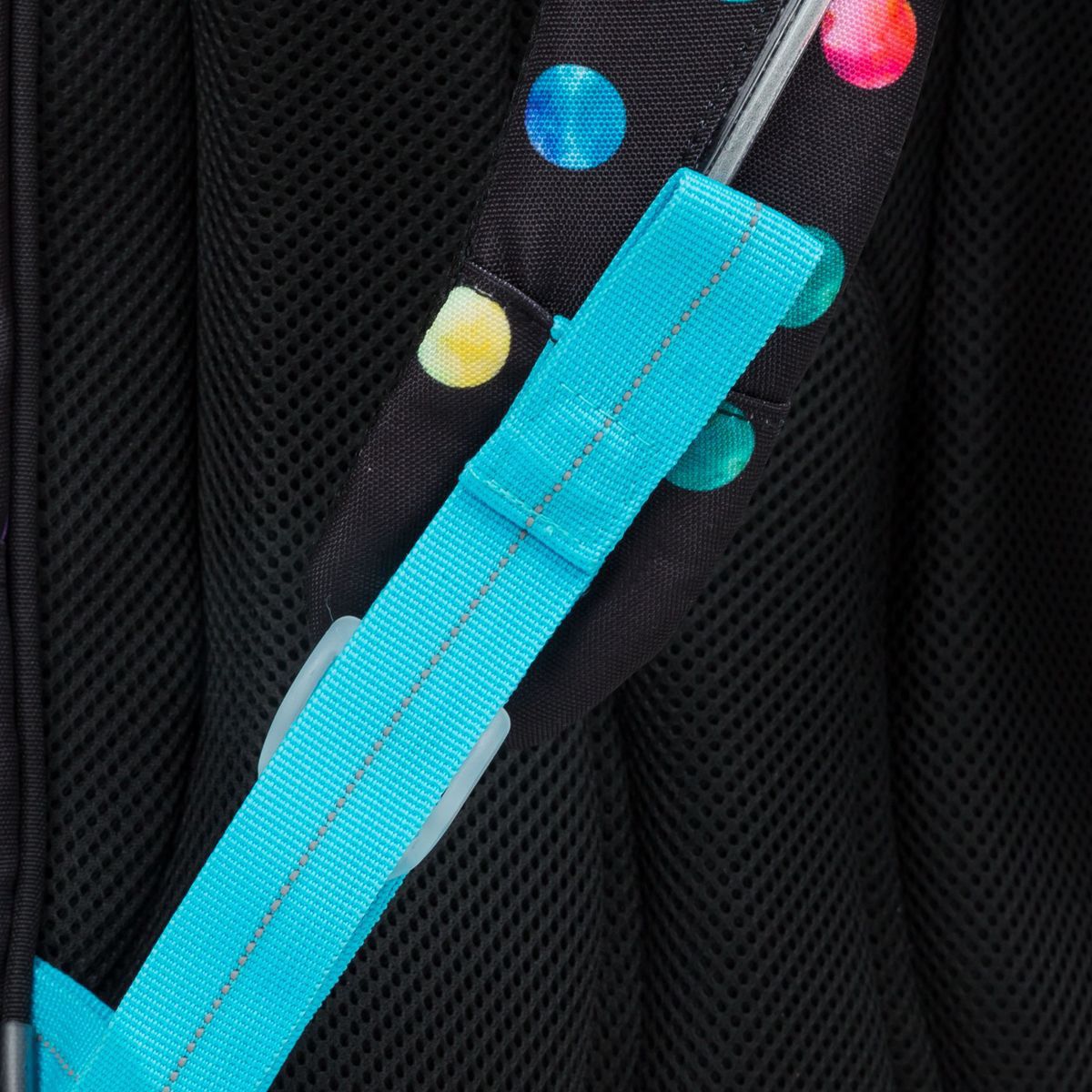 Kapsičku na lahev na pití najdete na boku batohu. Děti potřebují být vidět, zvláště v zimním období, proto je batoh opatřen řadou reflexních prvků na ramenních popruzích, čele i boku batohu.