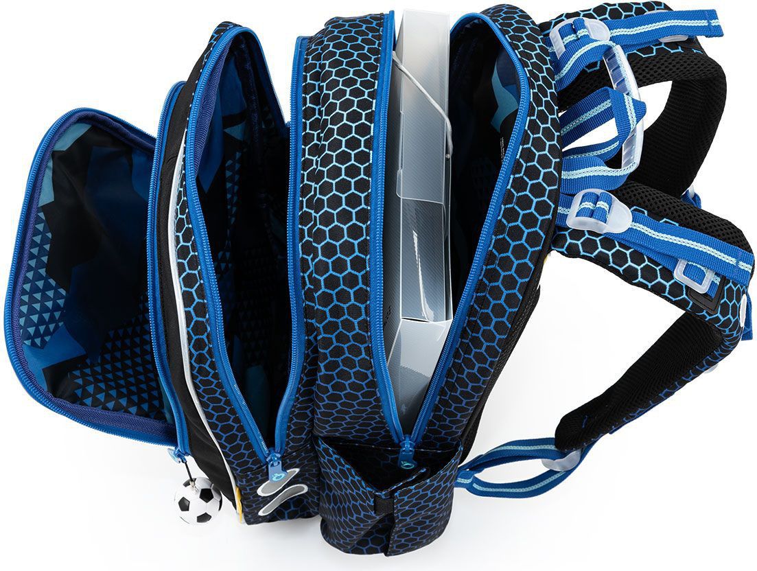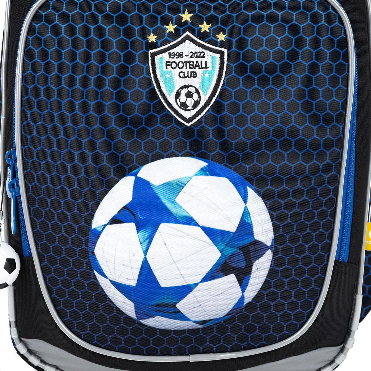 Fotbalisté, jste připraveni na školní zápas s učením? Co takhle se vyzbrojit tímhle super lehkým batohem s motivem fotbalového míče? Díky tomu, že batoh neváží ani kilo, se bude zamlouvat určitě i rodičům. A navíc nášivka na přední kapse a přívěsek s míčem, líbí?