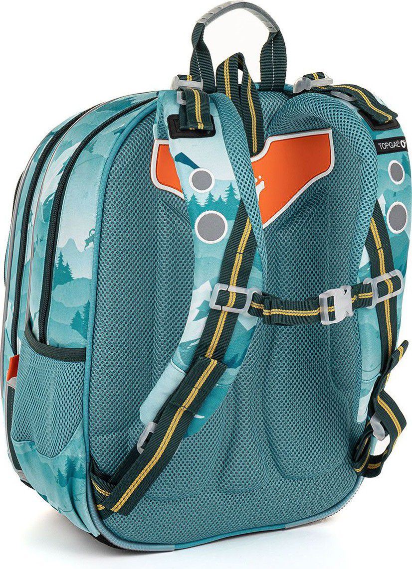 Batoh má dvě objemné hlavní komory. Zadní komora je objemnější a spolehlivě pojme všechno učení. Přední komora je o něco užší a je v ní umístěna ještě malá síťová kapsa na zip a jmenovka. Přední hluboká kapsa pojme např. penál ve stejném designu nebo krabičku na svačinku. Do bočních kapes se vejdou lahvičky o objemu 0,5 litru.