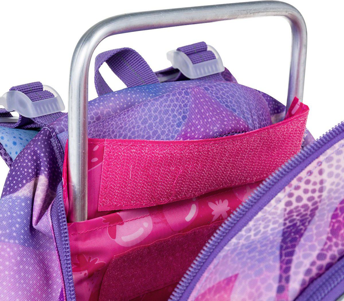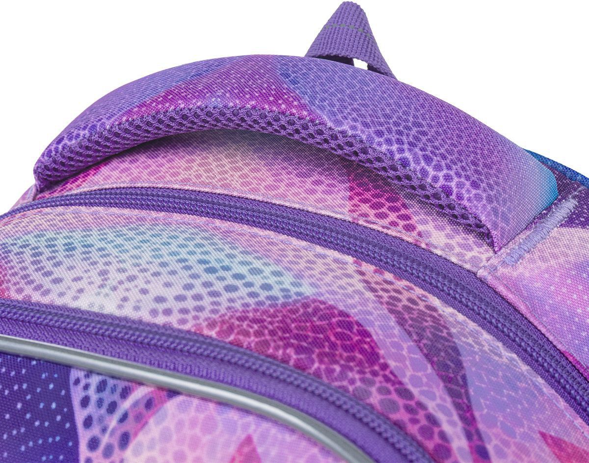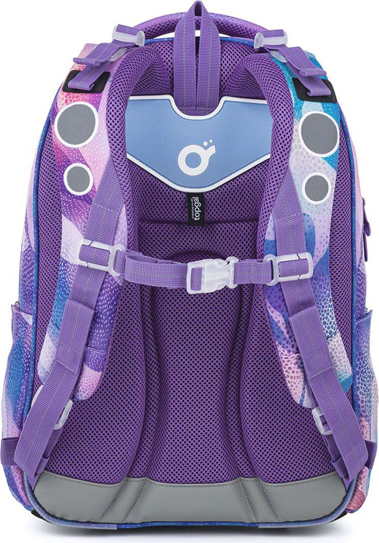 Školní batoh LORI 26009 je navržený pro školačky od 125 cm a díky svému objemu i konstrukci bez problémů vydrží až do 6. třídy. Pastelový abstraktní motiv v odstínech fialové, růžové a tyrkysové působí jemně, ale zároveň originálně – batoh tak skvěle doplní školní i volnočasový styl.