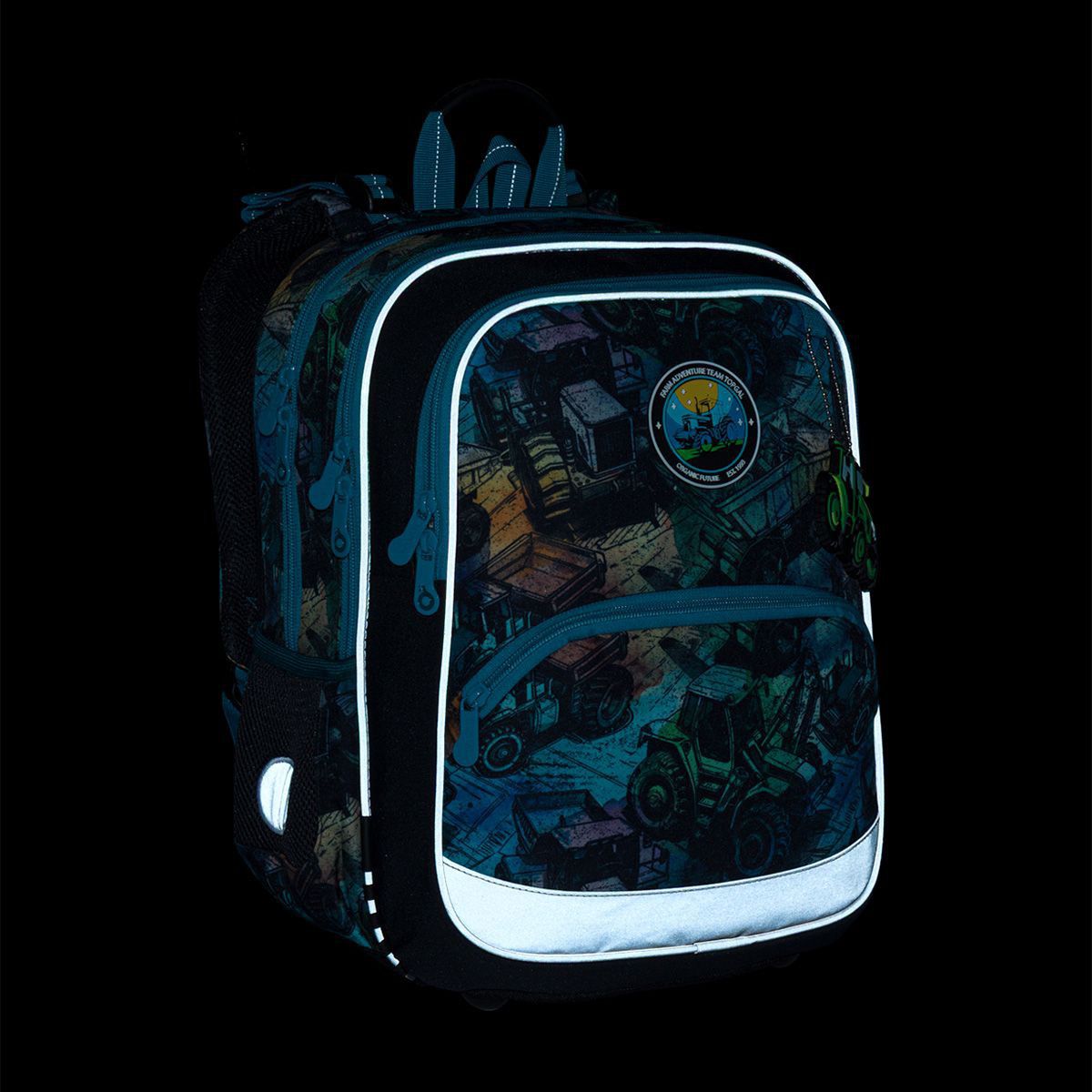Školní batoh BAZI 26018 je vhodný pro děti od 115 cm a ideální pro období od 1. do 3. třídy. Barevný motiv stavebních strojů zaujme malé školáky a promění každý školní den v nové dobrodružství.