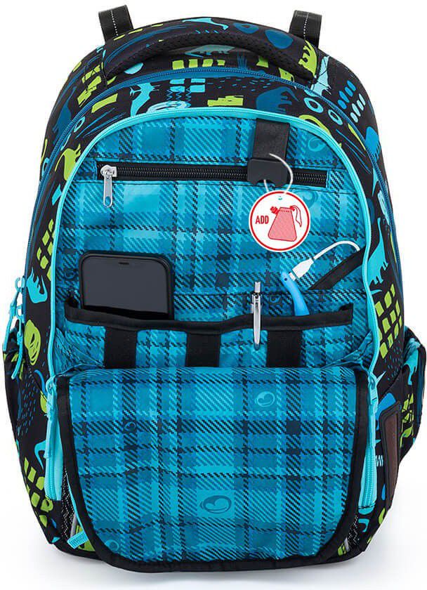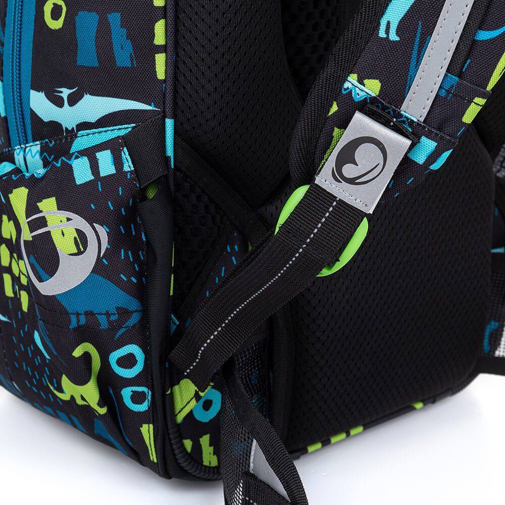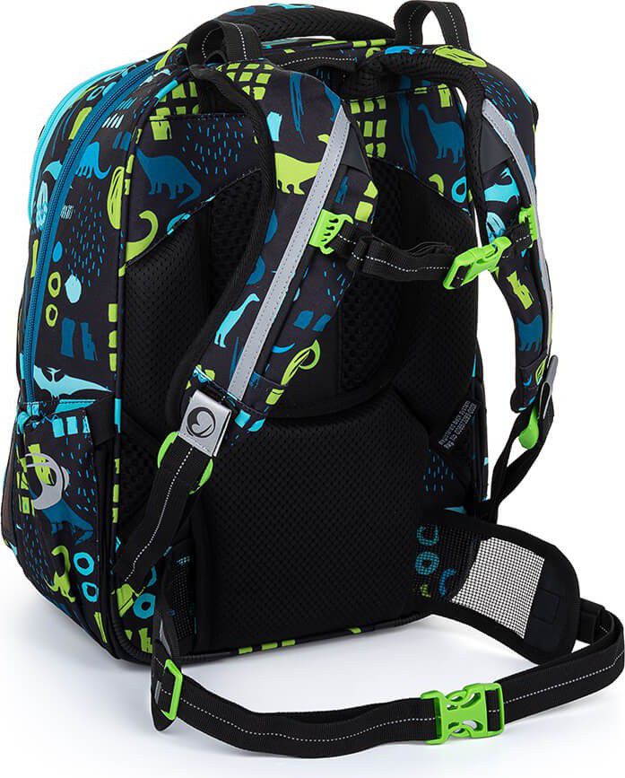 Ramenní popruhy jsou anatomicky tvarované a měkce polstrované. Popruhy je možné individuálně nastavit dle velikosti vašeho školáka, a to pomocí dolních plastových spon umístěných na ramenních popruzích. Součástí batohu je flexibilní hrudní páska k fixaci popruhů na ramenou školáka. Koncovky popruhů s reflexním prvkem a magnetem snadno uchytíte na konce ramenního pásu.