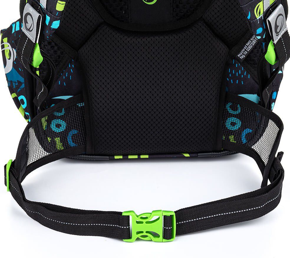 Popruhy jsou opatřeny regulovatelným hrudním pásem. Jejich vnitřní strana je zapravena pevným a neškrabavým síťovinovým materiálem. Popruhy je možné individuálně nastavit dle velikosti vašeho školáka, a to pomocí dolních plastových spon umístěných na ramenních popruzích.