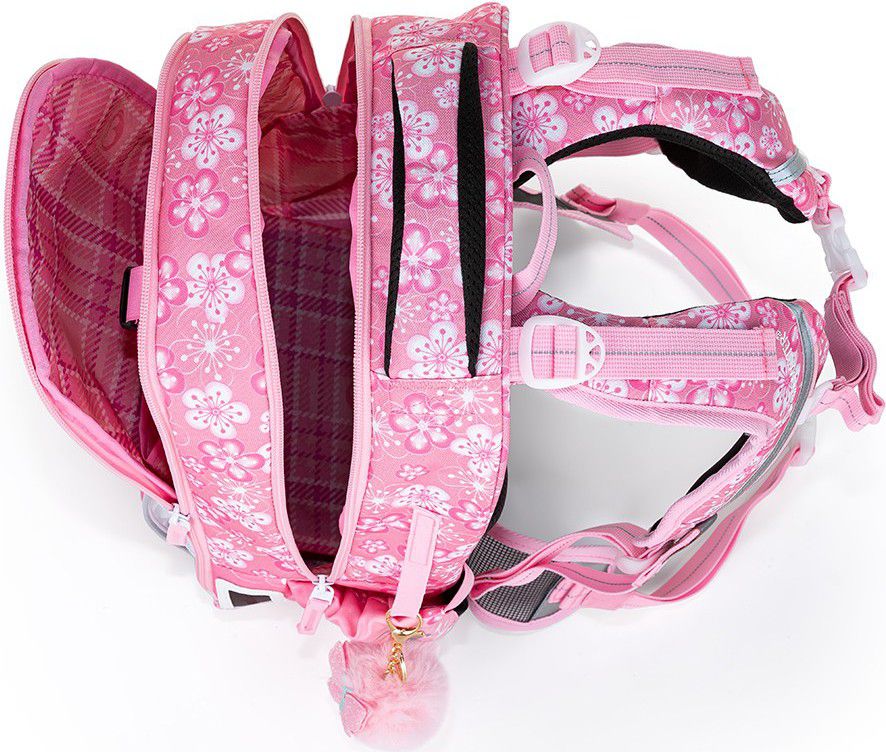 S růžovým dvoukomorovým batohem s třpytivým designem budou všechny malé holky chodit do školy s úsměvem