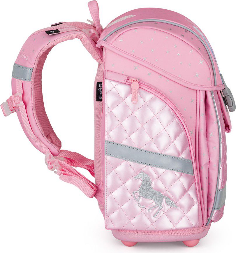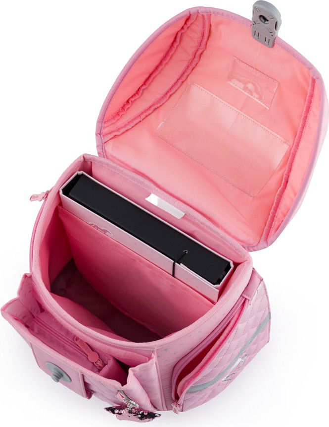 Aktovka: Školní batoh řady Premium Light nabízí kvalitu, prostor na školní potřeby i odlehčenou konstrukci pro pohodlnější nošení. Díky odlehčenému materiálu váží batoh pouhých 970 g. Polstrování je z příjemného prodyšného materiálu, široké měkčené popruhy jsou navrženy tak, aby dokonale přilnuly a rovnoměrně zatížily ramena dítěte. Pro pohodlnější nošení je batoh vybaven přitažnými a hrudními popruhy. Batoh je i navíc opatřen přidávnými háčky pro uchycení popruhů. Batohy ocení především ti nejmladší školáci s výškou od 121 cm. Nechybí ani praktické reflexní prvky, jednoduché magnetické zapínání, vnitřní rozřaďovač i velké množství kapes. Batoh Premium Light bude tak perfektním parťákem nejen do školy. Délka zádového panelu: 33 cm. Objem: 26 l. Nosnost: 8 kg. Sáček: Praktický sáček na cvičky nebo přezůvky do školy. Uzavírá se snadno stažením šňůrek. Penál: Jednopatrový školní penál se dvěma chlopněmi bez náplně. Gumová poutka k uchycení psacích potřeb. Na vnitřní chlopni je průhledná fólie na rozvrh hodin.