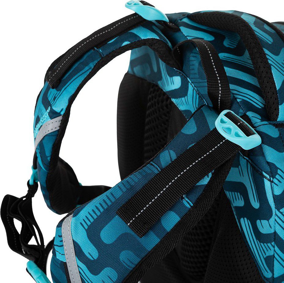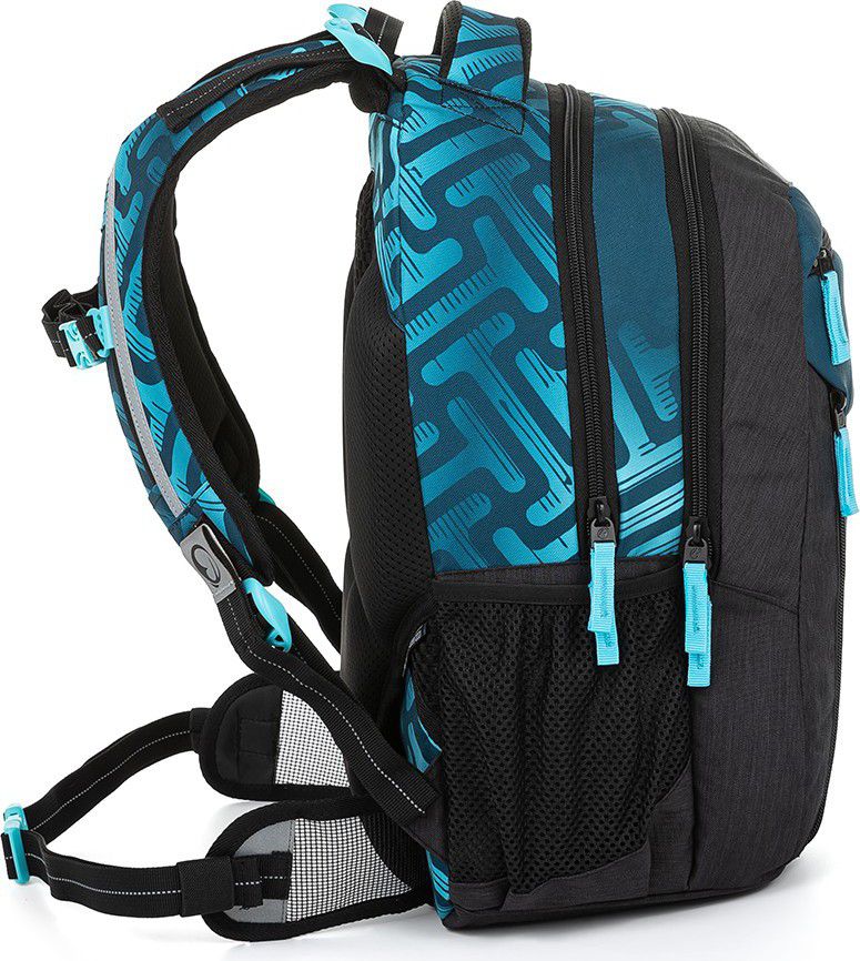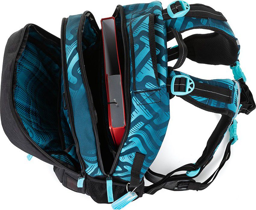 Ramenní popruhy jsou anatomicky tvarované a měkce polstrované. Batoh je možné fixovat na ramenou pomocí flexibilní hrudní pásky, která je součástí.