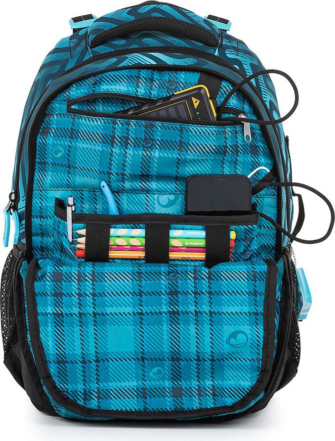 V přední části batohu je horní kapsa vhodná na drobnosti. Boční kapsy jsou vhodné na láhev. Dále obsahuje 2 přední kapsy šité naproti sobě.