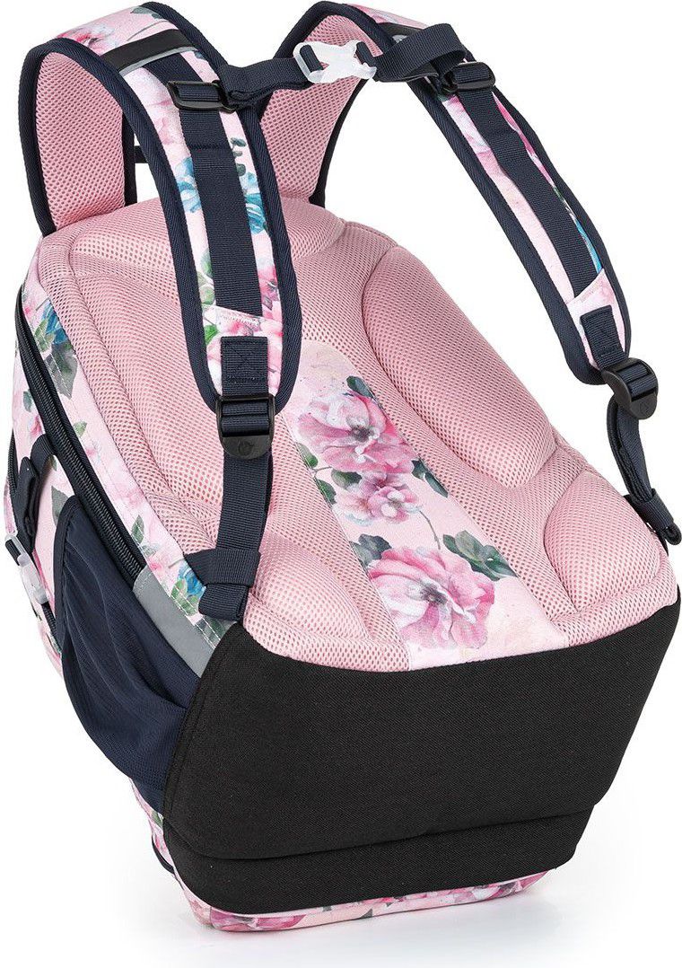 Záda batohu jsou vyztužena hliníkovou výztuhou, anatomicky tvarována a měkce polstrovaná. Tvarované a polstrované jsou i ramenní popruhy, které doplňuje výškově nastavitelná hrudní přezka.