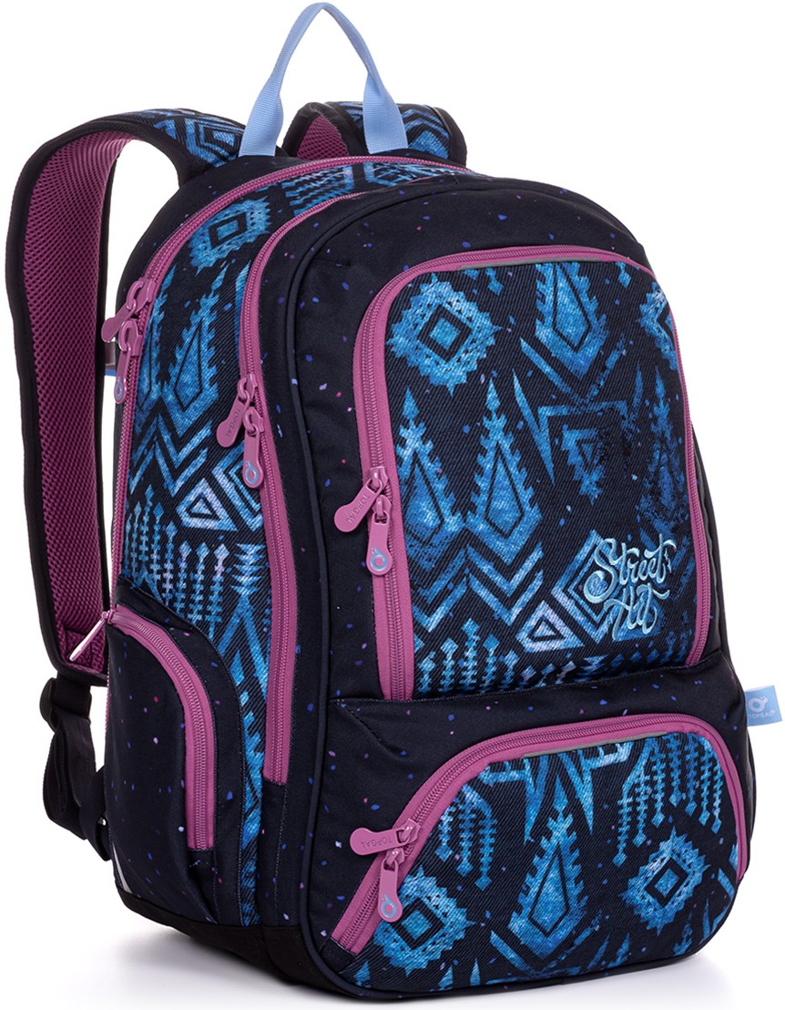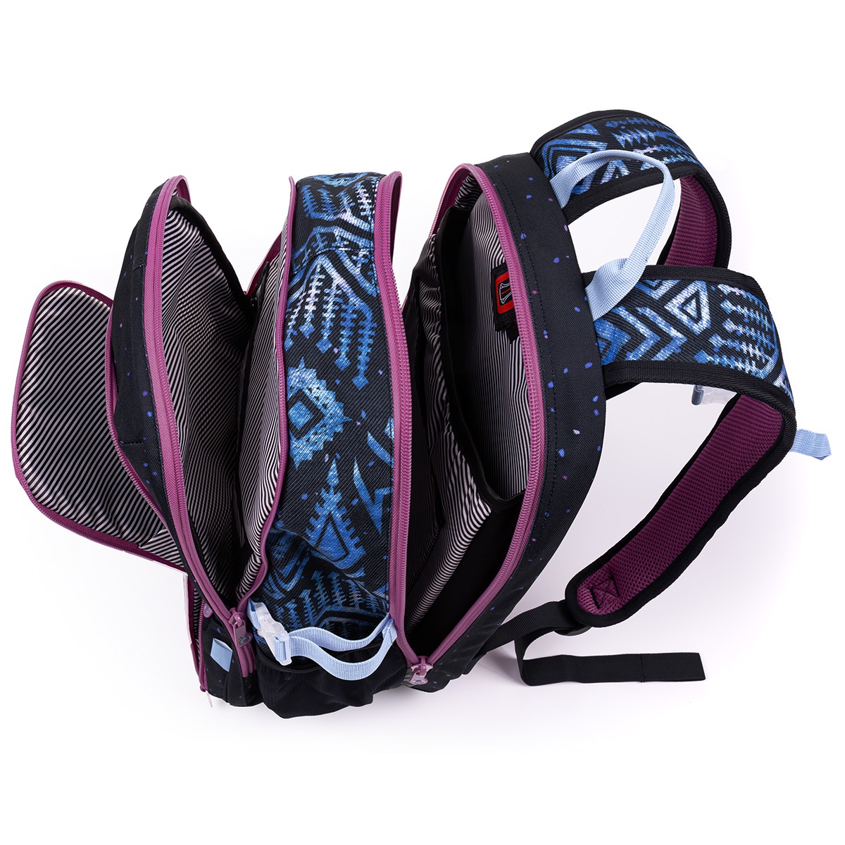 O potisk ve stylu etno jste si často psali, proto jsme v letošním roce pro holky ušili praktický, objemný, dvoukomorový batoh SURI v modrých barvách a fialovými detaily na zipech a v zádové části. Tak co holky, líbí?