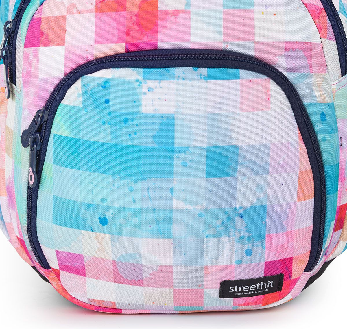 Úplná novinka mezi studentskými batohy – jednokomorový objemný batoh SKYE s pevnými polstrovanými zády, ale nízkou váhou. Objemem dosahuje až 28 litrů. Jedna hlavní objemná komora přehledně pojme vše potřebné. Uvnitř komory najdete polstrovanou kapsu na notebook, praktickou síťovou kapsu na zip a karabinu na klíče našitou na dlouhé pružence. Další drobnosti se vejdou do dvou menších předních kapsiček – třeba penál ETUE 22035 ve stejném designu.