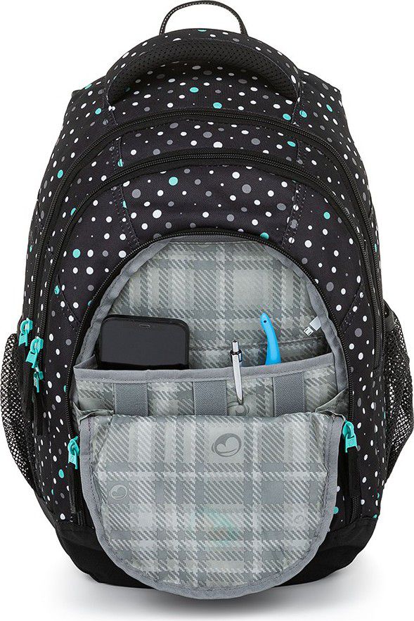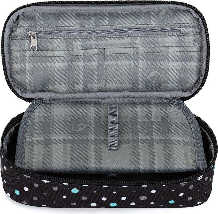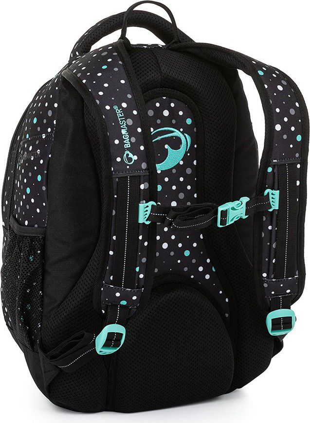 Seznamte se Supernovou, černo-bílo-tyrkysovým puntíkovaným setem batohu a penálu