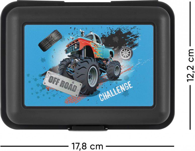 • Plastový box na svačinu. • Box má uzavírání na jeden zámek a obsahuje dělicí přepážku. • Nedoporučujeme mýt v myčce