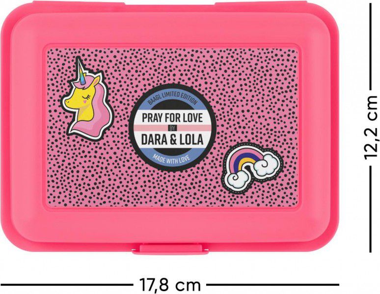 Praktický plastový box na svačinu s motivem navrženým dcerou Dary Rolins a uzavíráním na jeden zámek