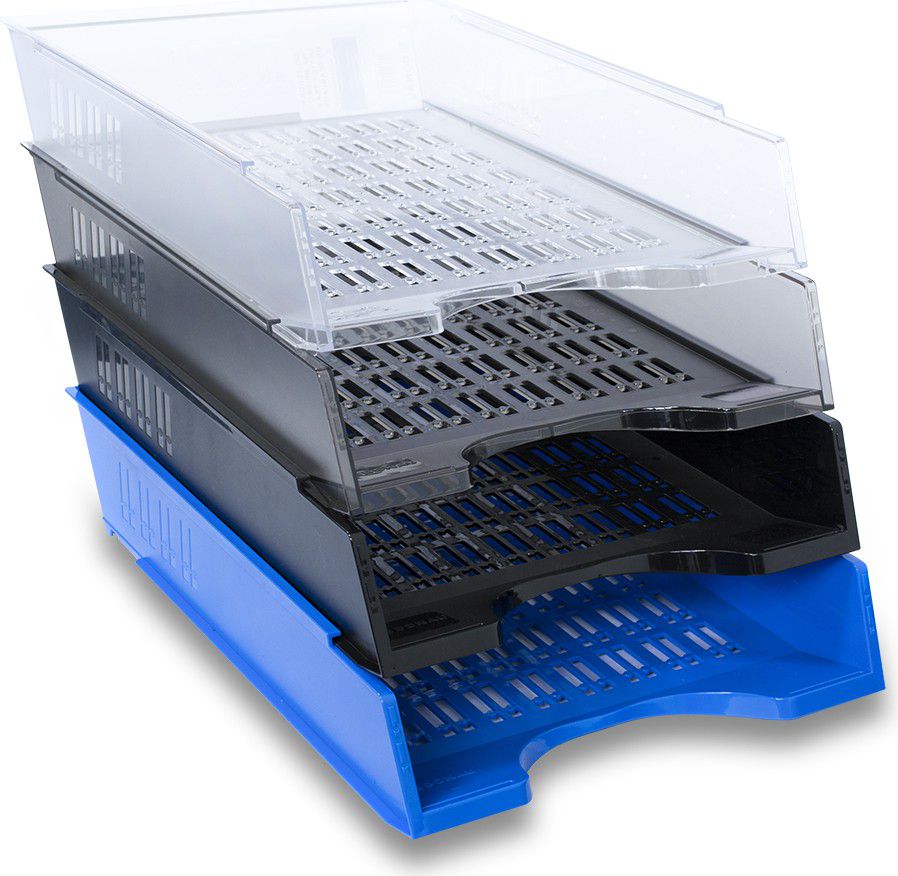 Kancelářský děrovaný odkladač na dokumenty formátu A4. Masivní a odolné provedení. Prostor pro štítky (nejsou součástí balení). Odkladače lze prakticky kombinovat a kaskádově vrstvit.