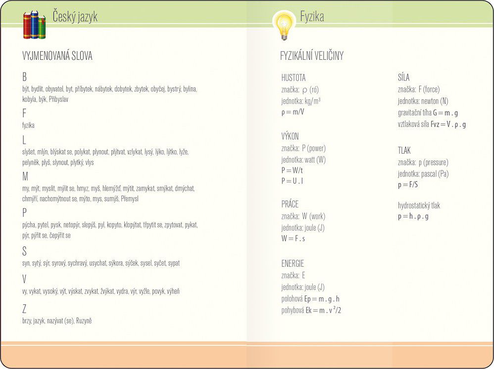 Obsahuje české kalendárium, rozvrh hodin, adresář, přehled školních prázdnin a užitečné informace z předmětů jako matematika, chemie, fyzika a český jazyk, což usnadní přípravu na školní úkoly i plánování.